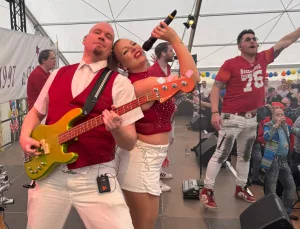 GesangEr feiert 2024 sein 35jähriges Bühnenjubiläum! Alles begann in den 90ern als Keyboarder der legendären sauerländer Rockband „Hard Live“. Später tourte er als Sänger (2007 bis 2012) einer der weltweit erfolgreichsten Robbie Williams Covershows „Escapology“ durch Europa, Asien und sogar Australien. In jungen Jahren arbeitet er zudem in angesagten Partylocations auf Mallorca unter dem Namen „DJ Loco“. 2012 kam er zur hessischen Partyband „The Hangover“ und räumte dort viele Auszeichnungen im Coverbereich (beste Partyband Hessens, etc.) ab. Seit 2019 ist er die Stimme und das Gesicht von „Tante Käthe“.